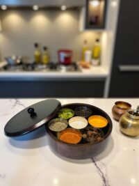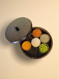 • Includes Metal Containers – Comes with round open metal spice containers for easy masala storage, herbs, dry fruits, or tea leaves