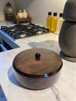 - Secure Wooden Lid with Knob ā Ergonomic lid ensures freshness while providing an easy grip for serving